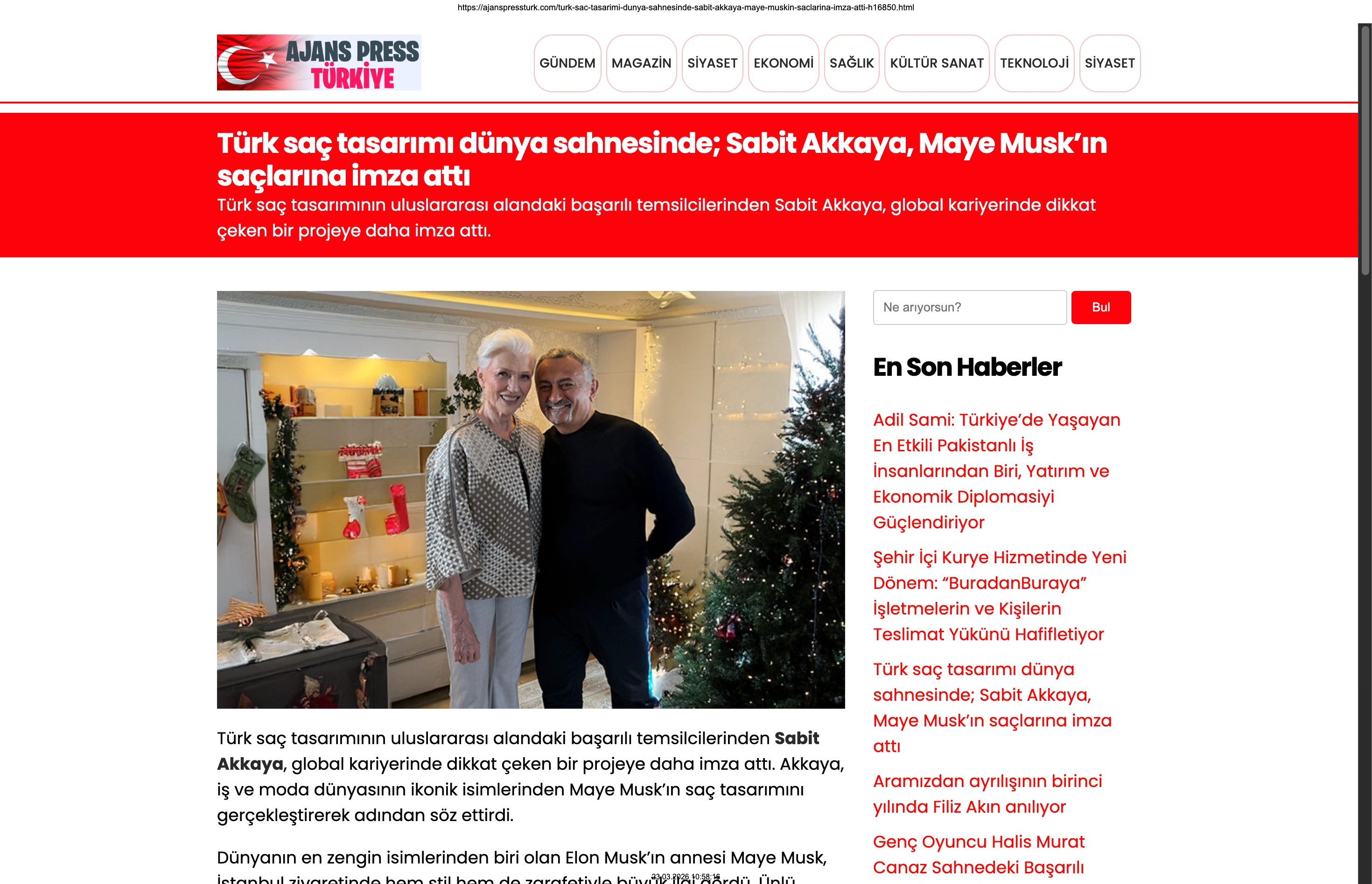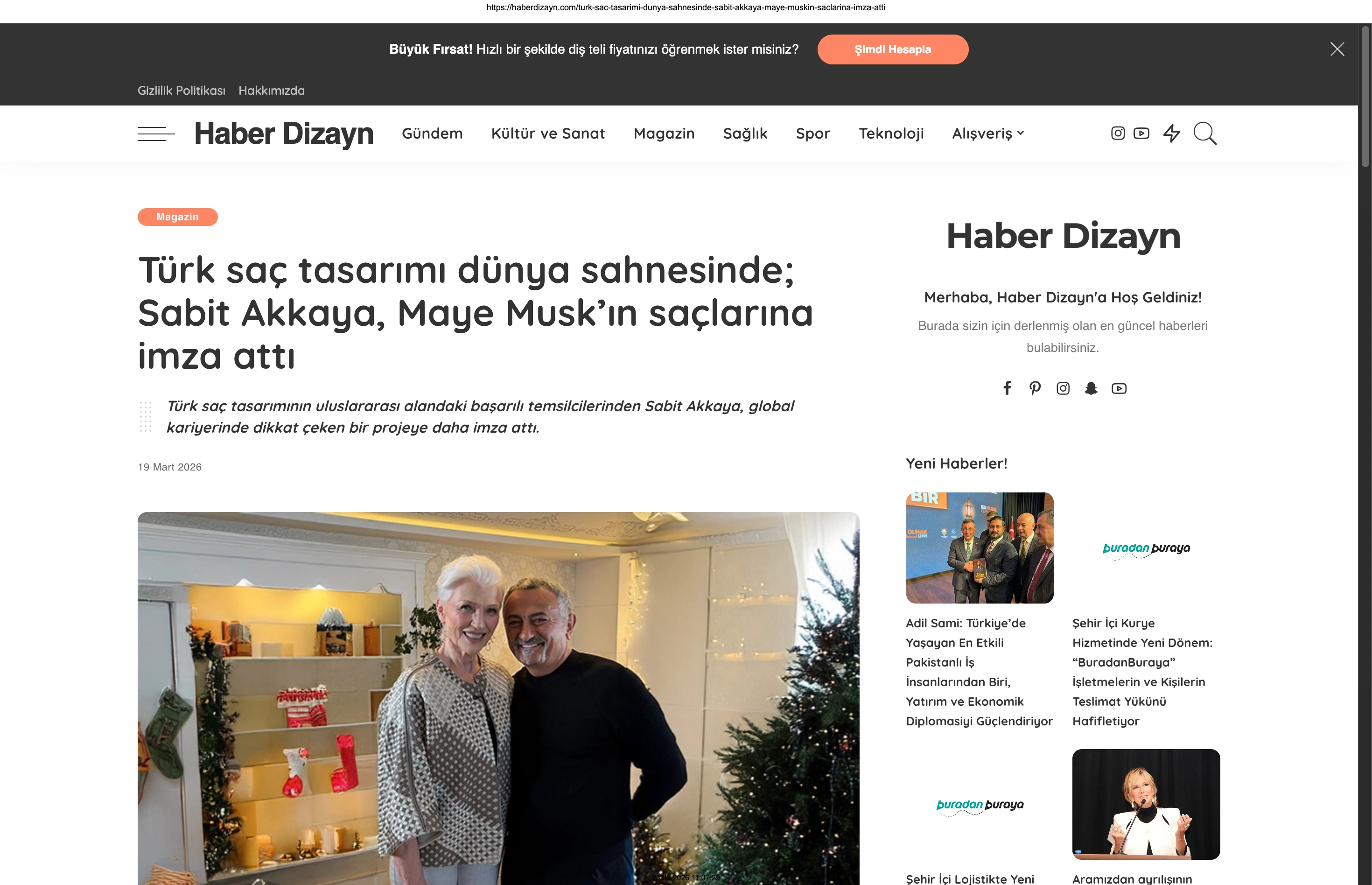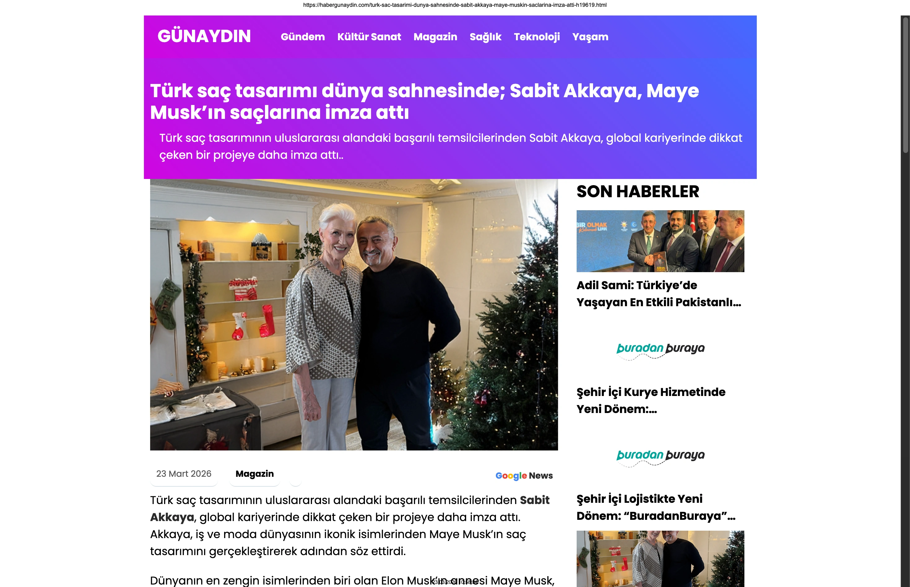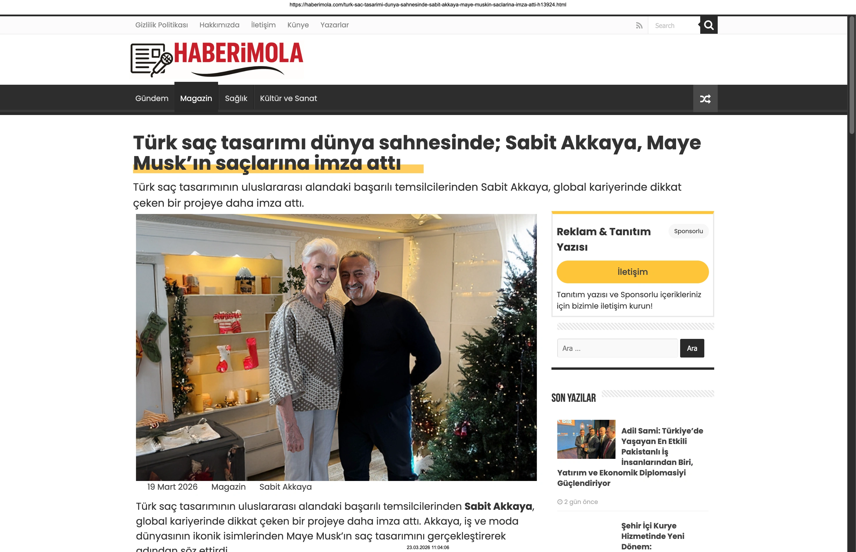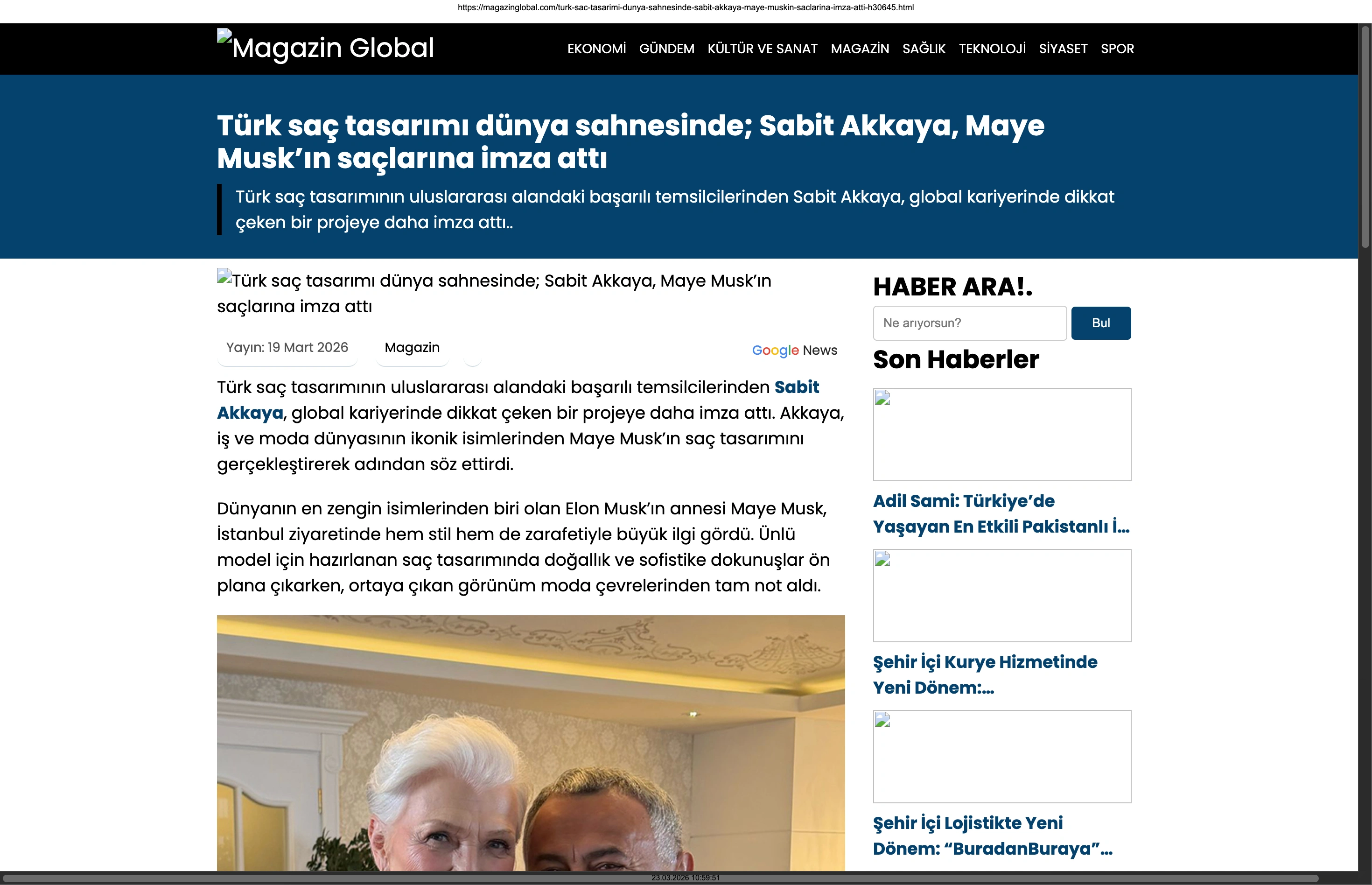 Basında Büyük Yankı Uyandırdı Bu gurur verici buluşma, basında da geniş yer buldu. Magazin gündeminin nabzını tutan platformlardan Magazinname, bu özel anı okuyucularına "Türk saç tasarımı dünya sahnesinde: Sabit Akkaya, Maye Musk'ın saçlarına imza attı" başlığıyla duyurdu. Uluslararası arenada markamızın ve ülkemizin adını duyurmak, vizyonumuzu ve tasarımlarımızı böylesine önemli isimlerle buluşturmak bizim için büyük bir motivasyon kaynağı.