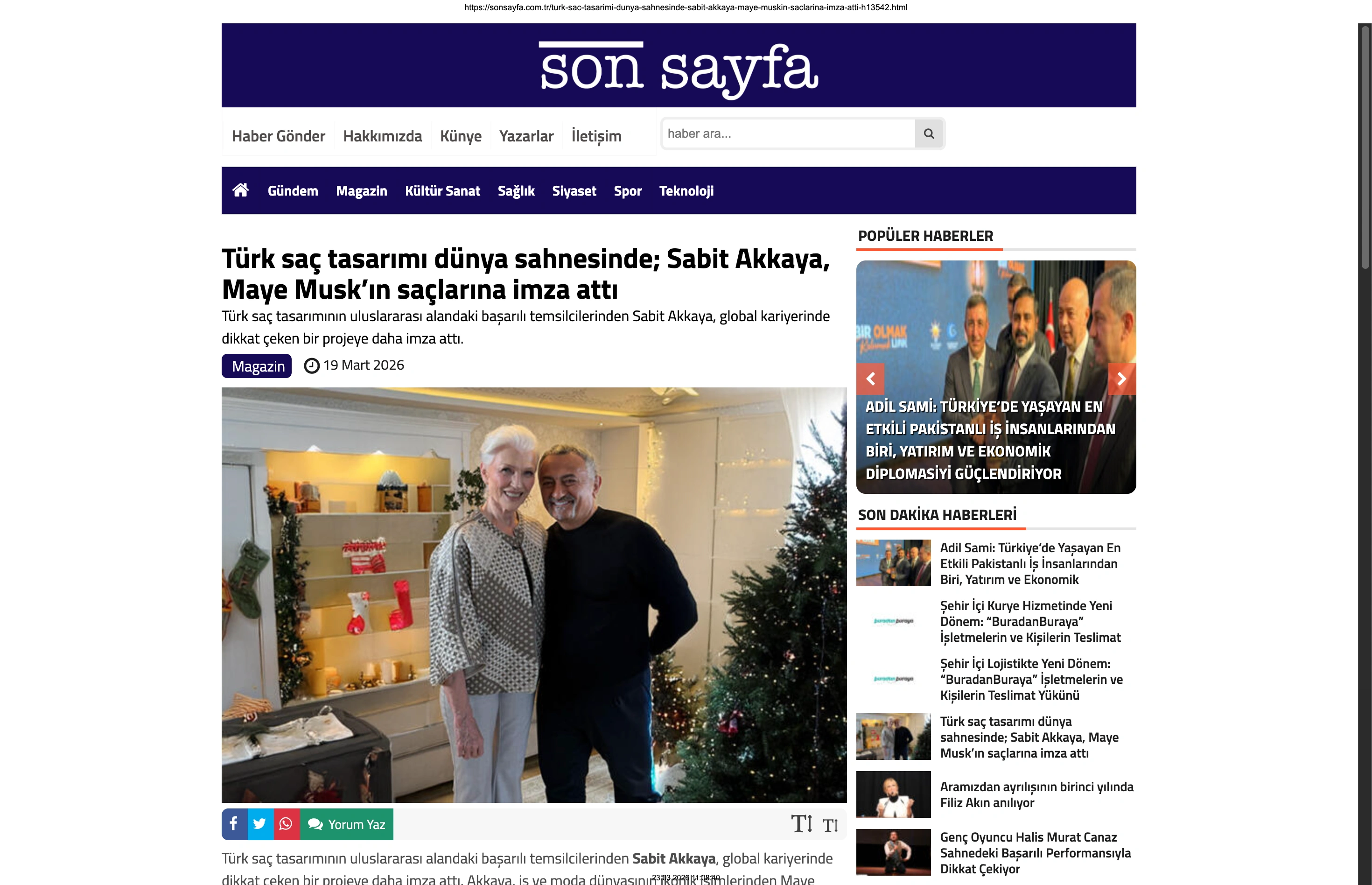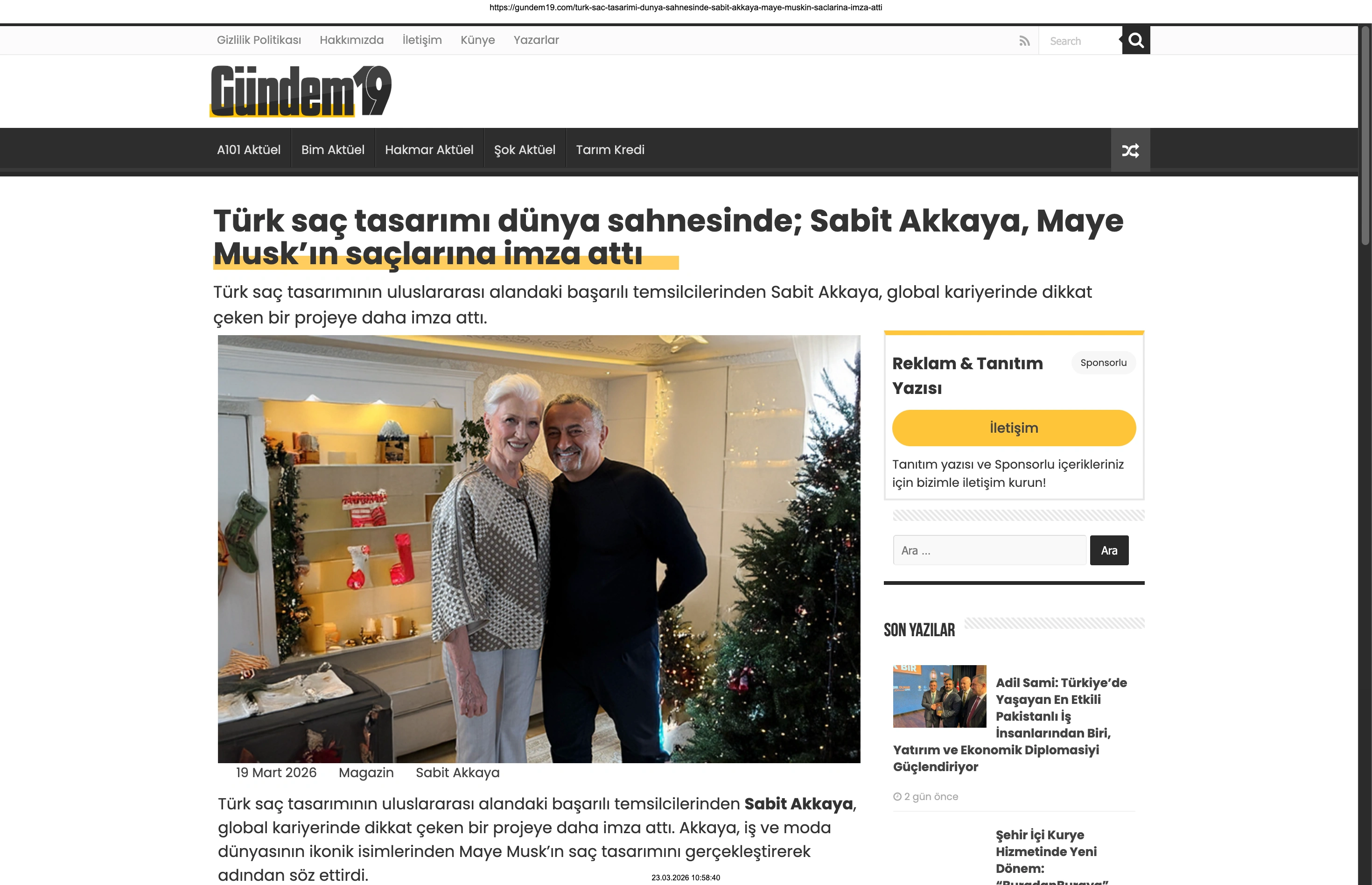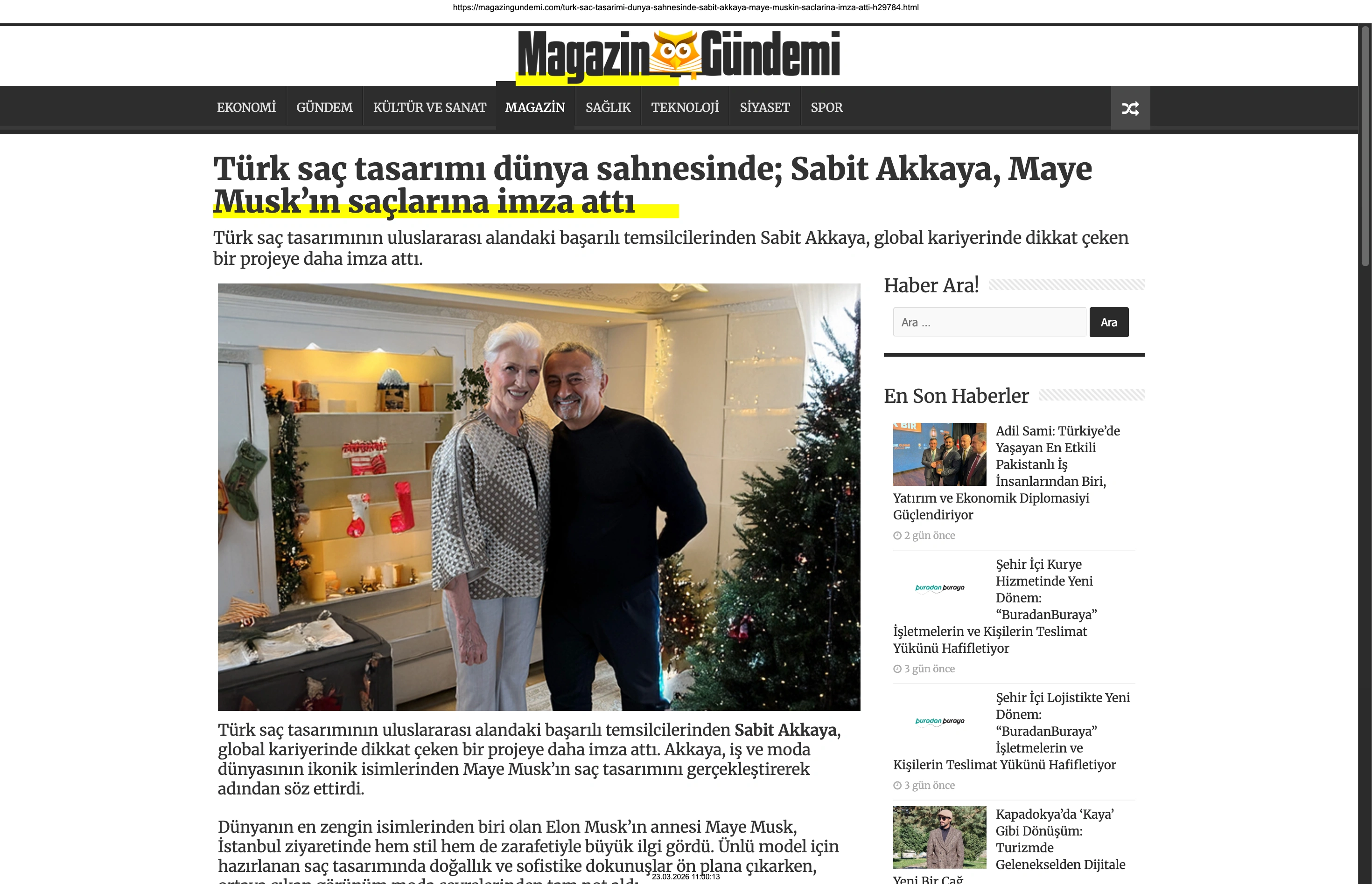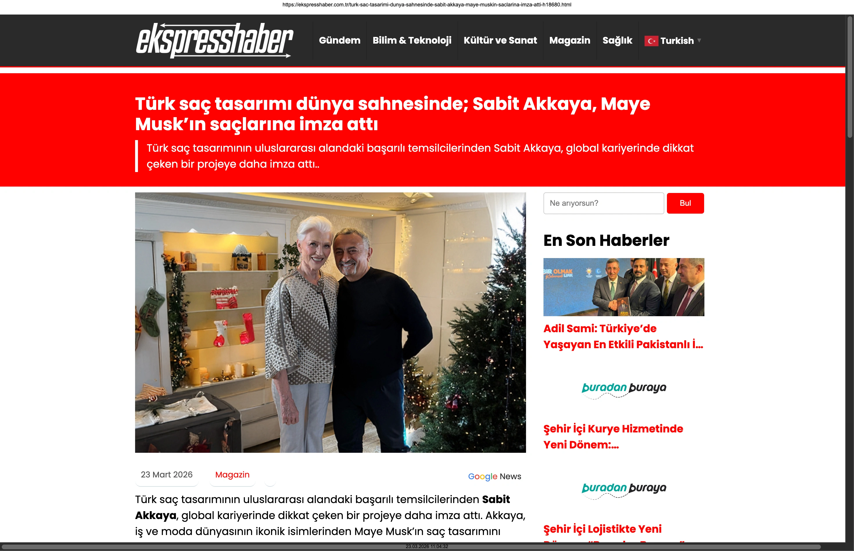 Basında Büyük Yankı Uyandırdı Bu gurur verici buluşma, basında da geniş yer buldu. Magazin gündeminin nabzını tutan platformlardan Magazinname, bu özel anı okuyucularına "Türk saç tasarımı dünya sahnesinde: Sabit Akkaya, Maye Musk'ın saçlarına imza attı" başlığıyla duyurdu. Uluslararası arenada markamızın ve ülkemizin adını duyurmak, vizyonumuzu ve tasarımlarımızı böylesine önemli isimlerle buluşturmak bizim için büyük bir motivasyon kaynağı.