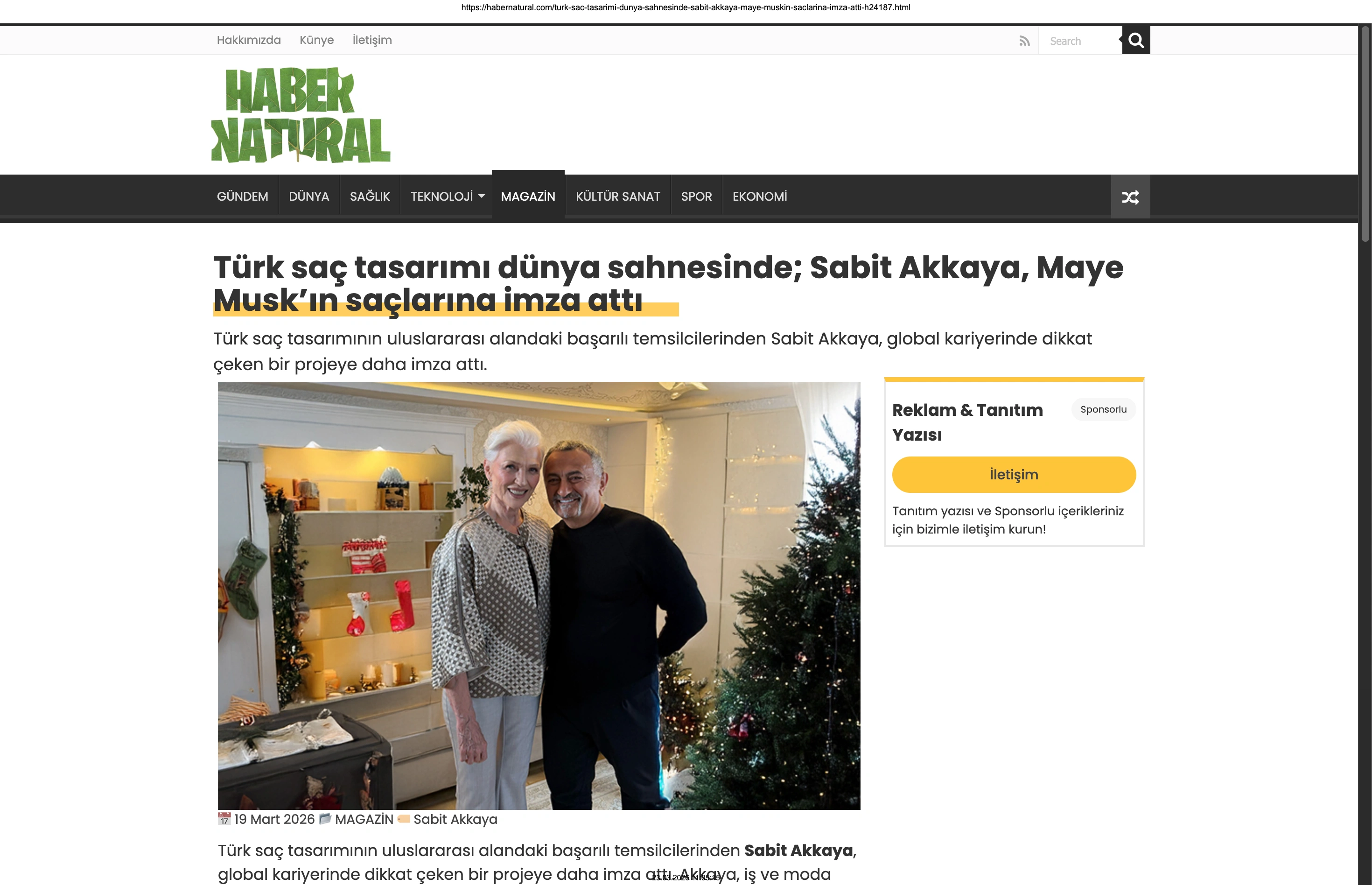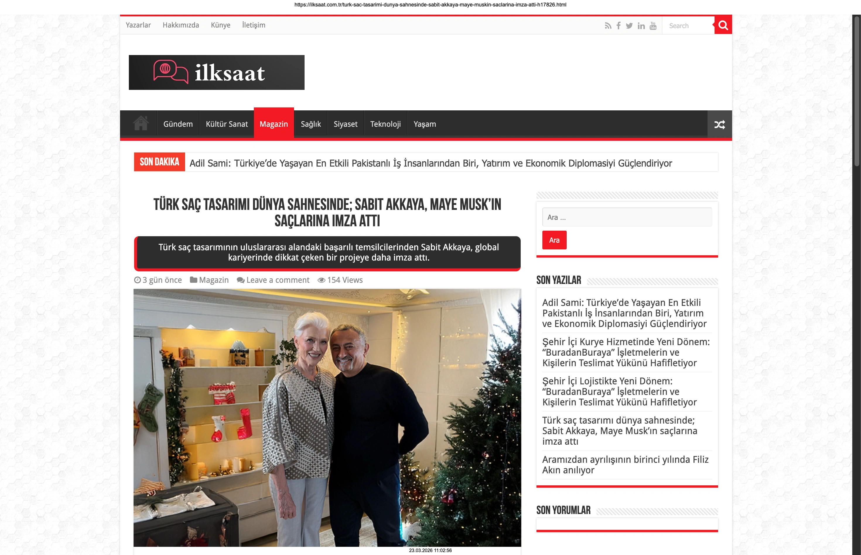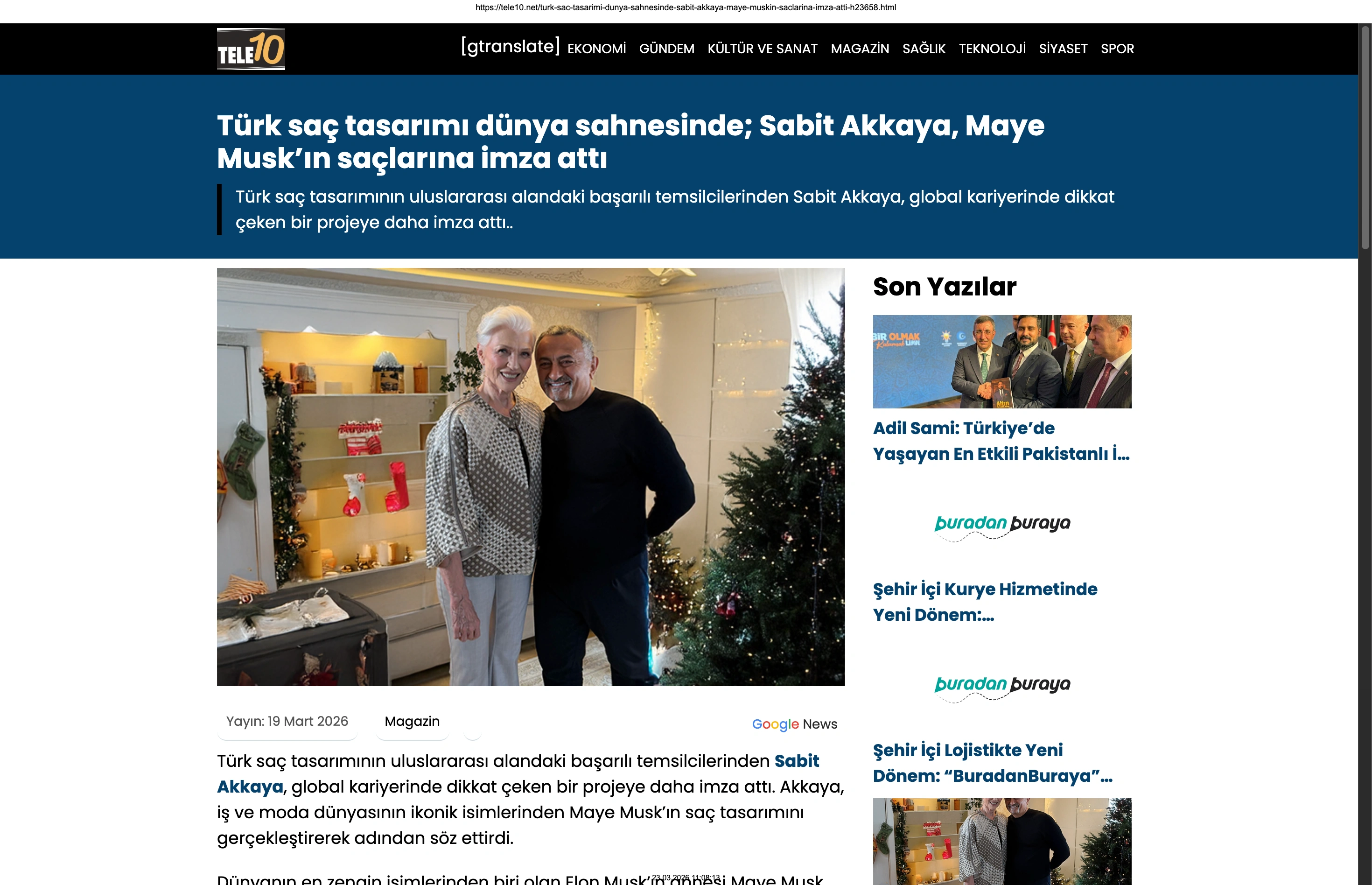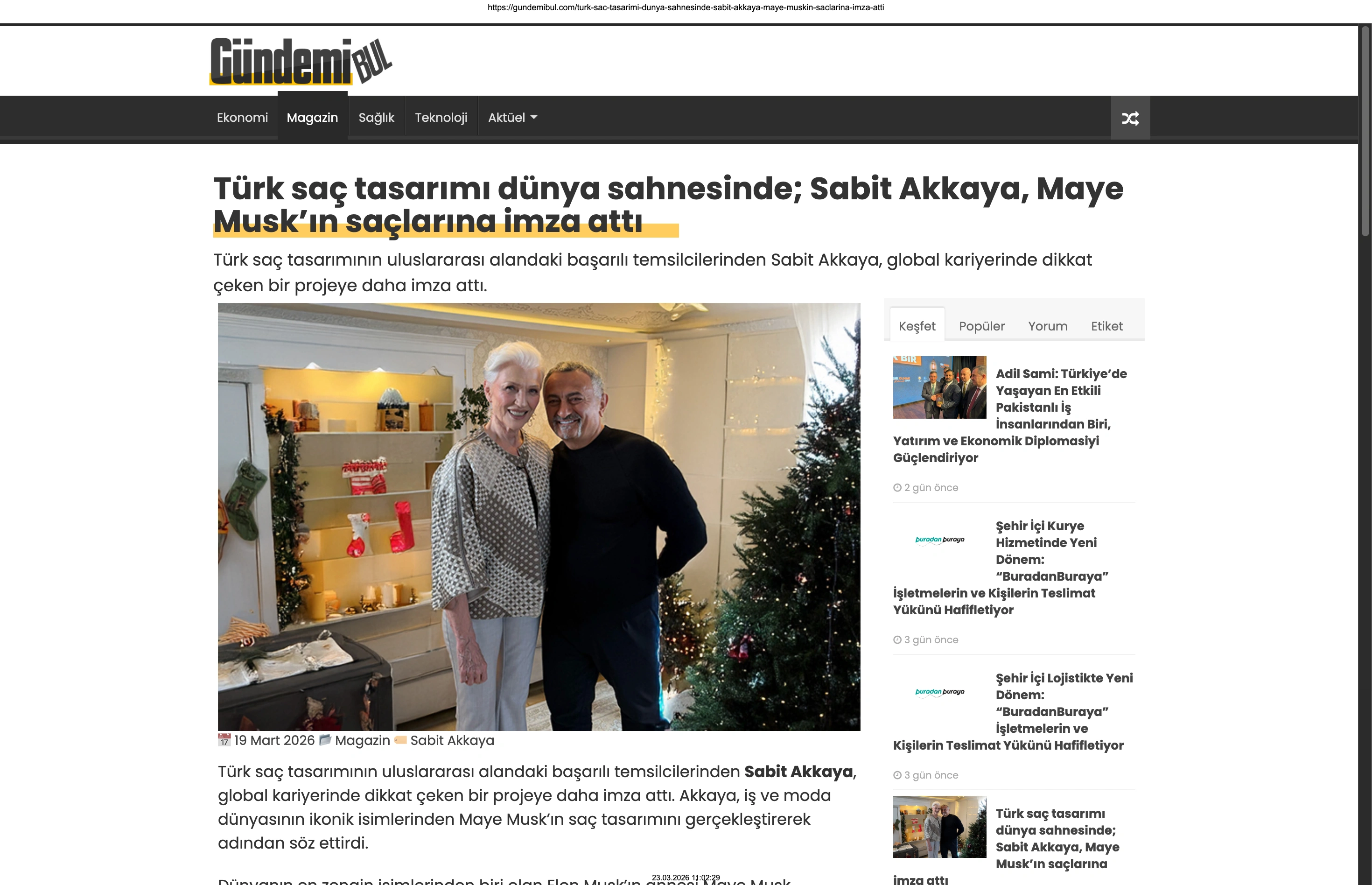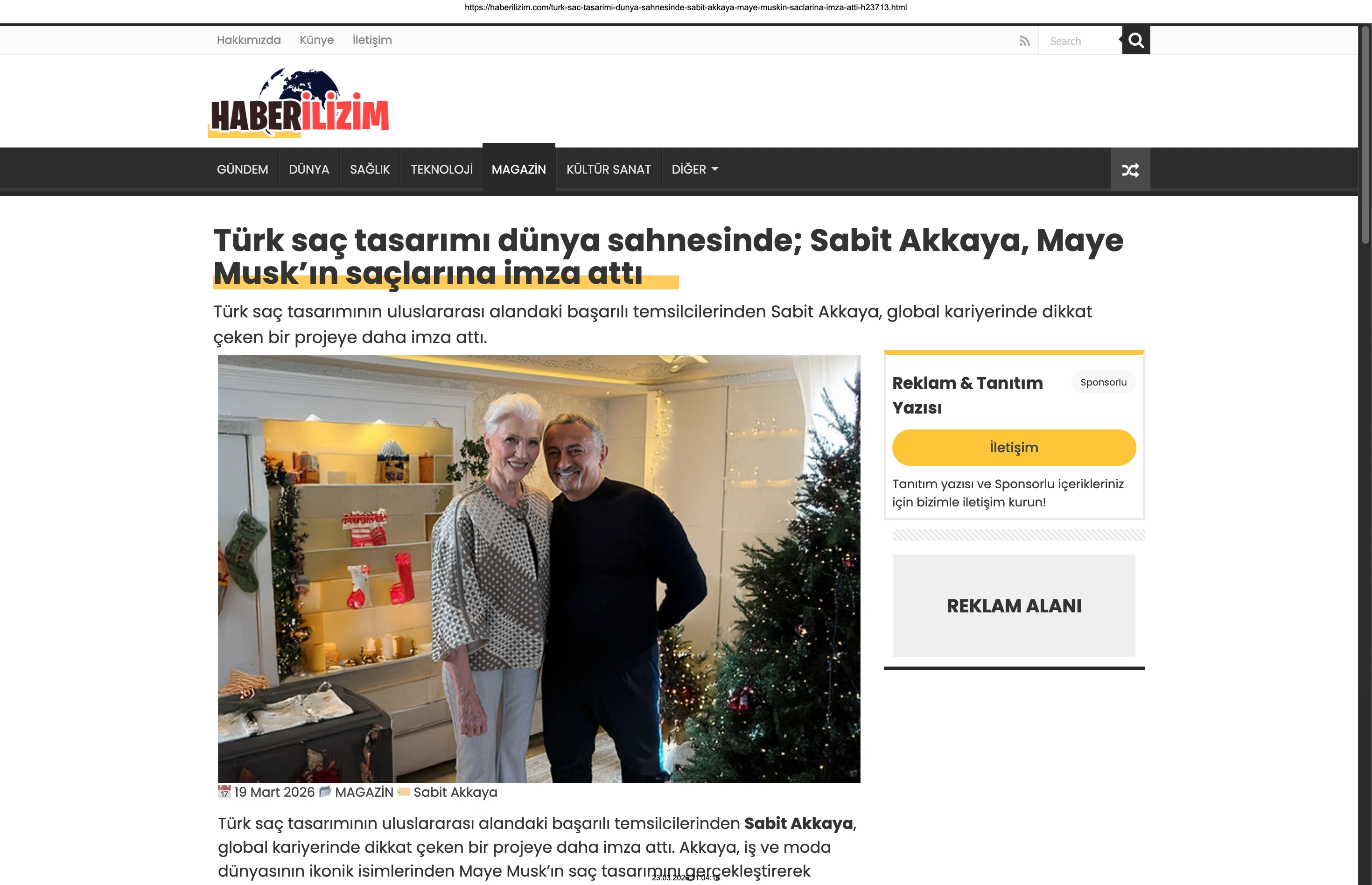 Basında Büyük Yankı Uyandırdı Bu gurur verici buluşma, basında da geniş yer buldu. Magazin gündeminin nabzını tutan platformlardan Magazinname, bu özel anı okuyucularına "Türk saç tasarımı dünya sahnesinde: Sabit Akkaya, Maye Musk'ın saçlarına imza attı" başlığıyla duyurdu. Uluslararası arenada markamızın ve ülkemizin adını duyurmak, vizyonumuzu ve tasarımlarımızı böylesine önemli isimlerle buluşturmak bizim için büyük bir motivasyon kaynağı.