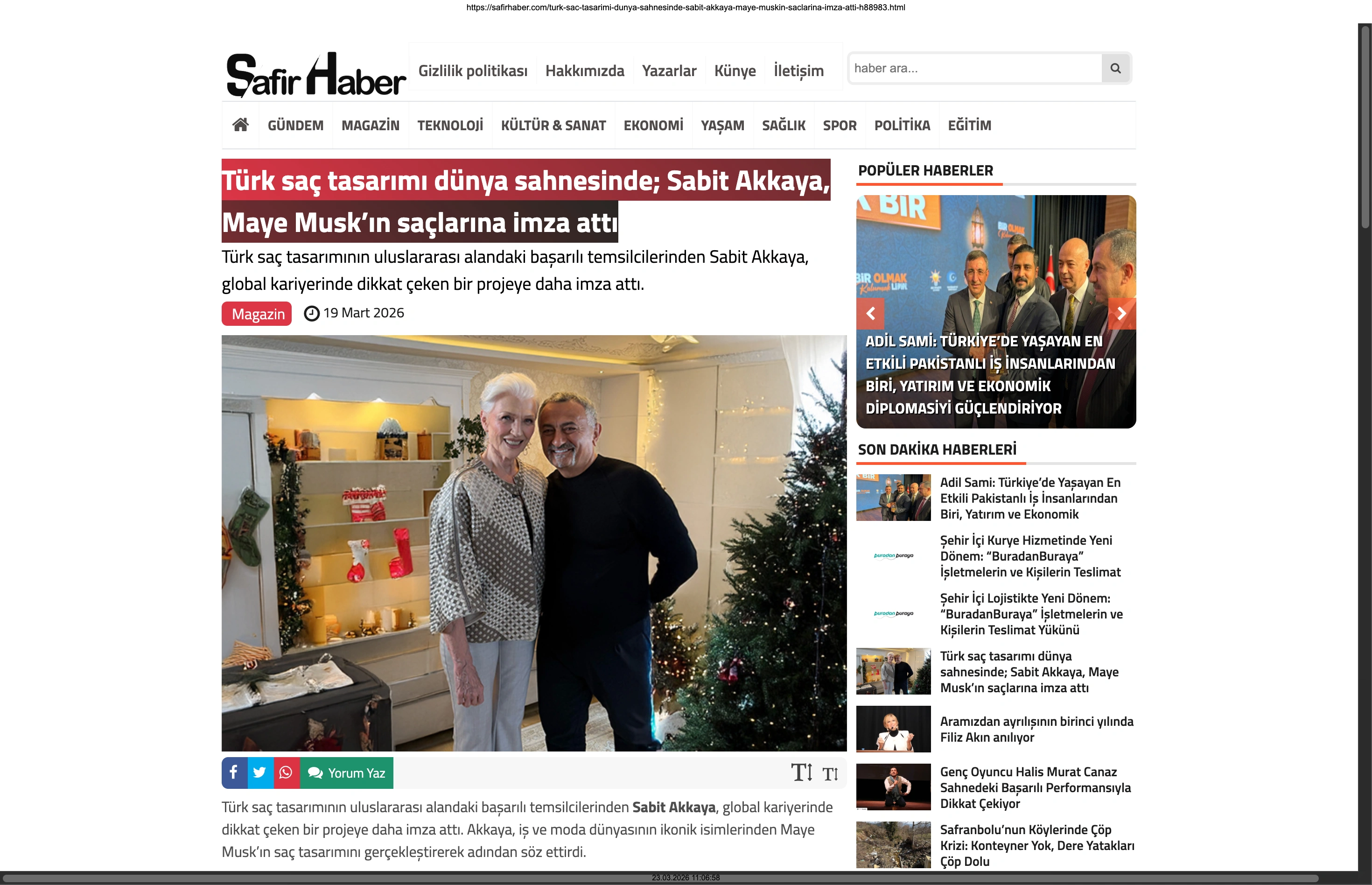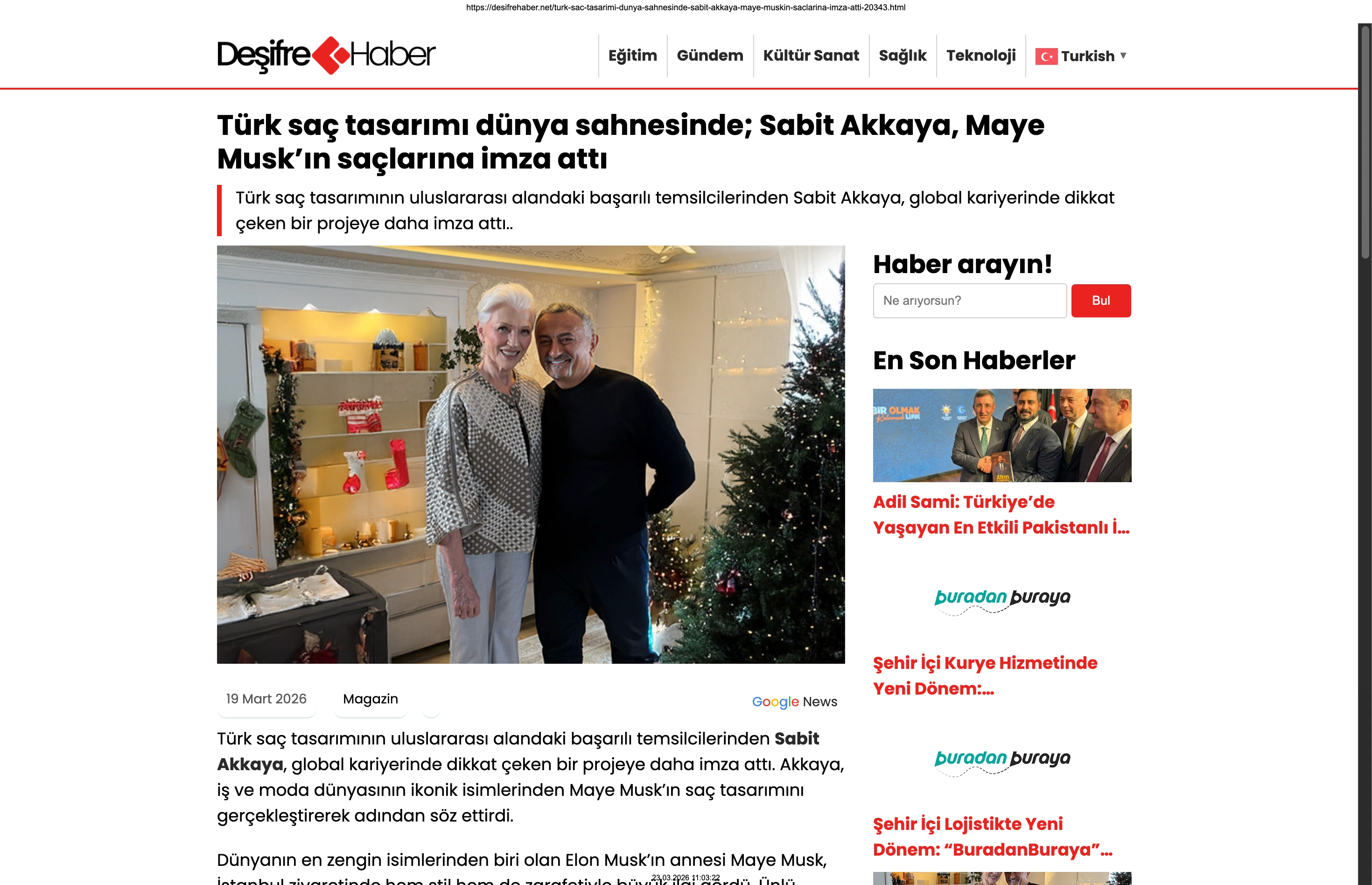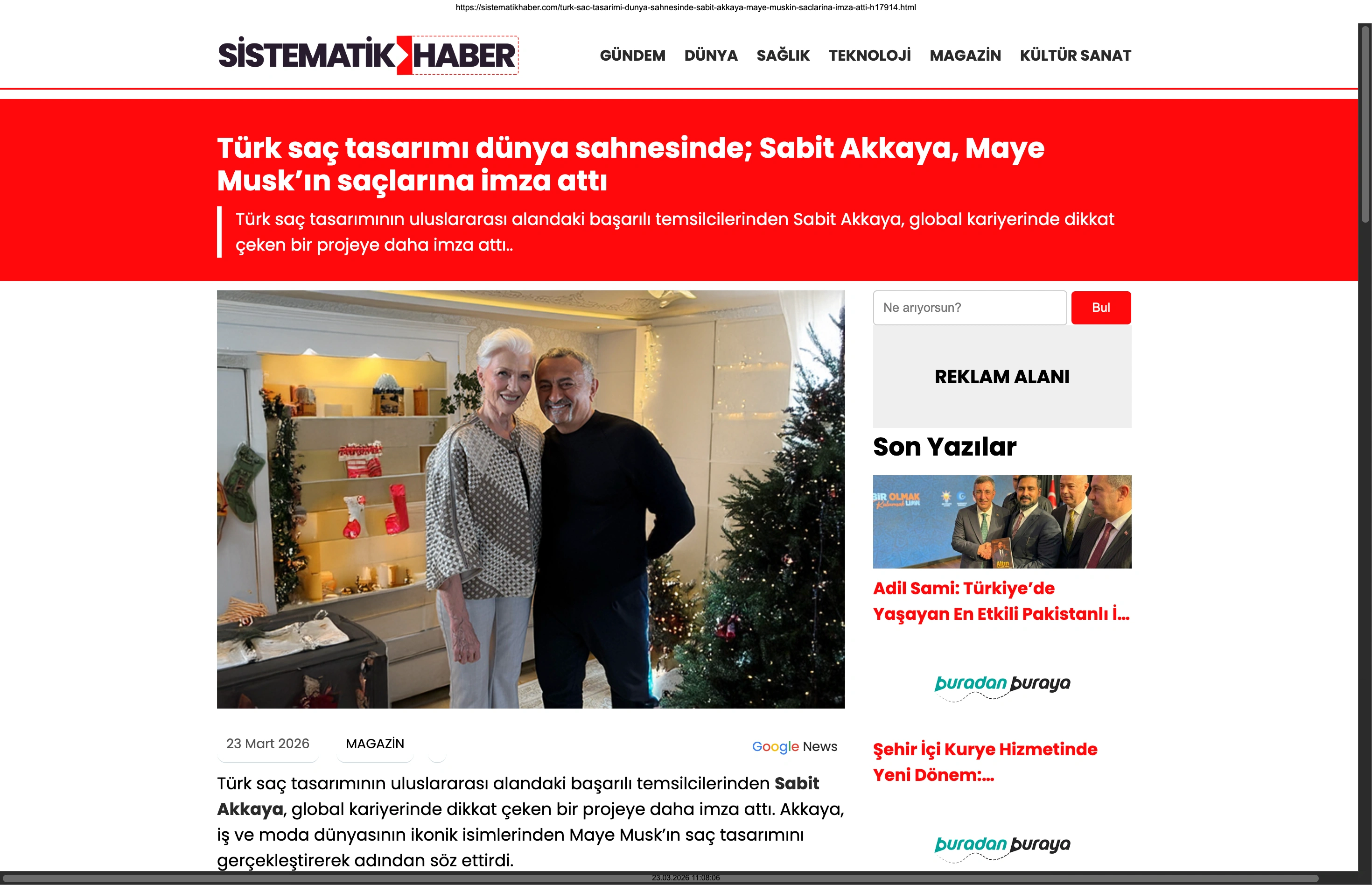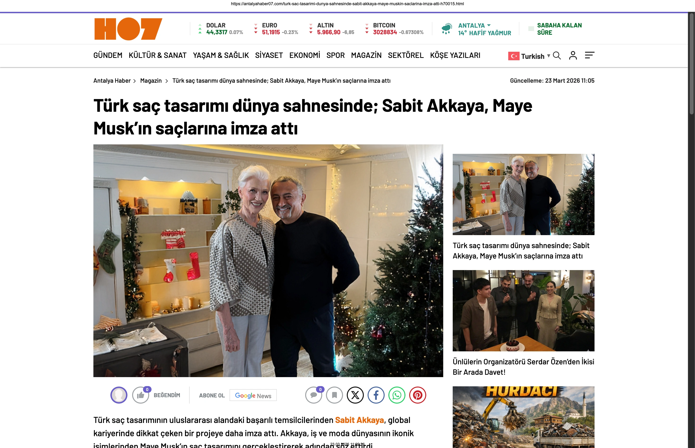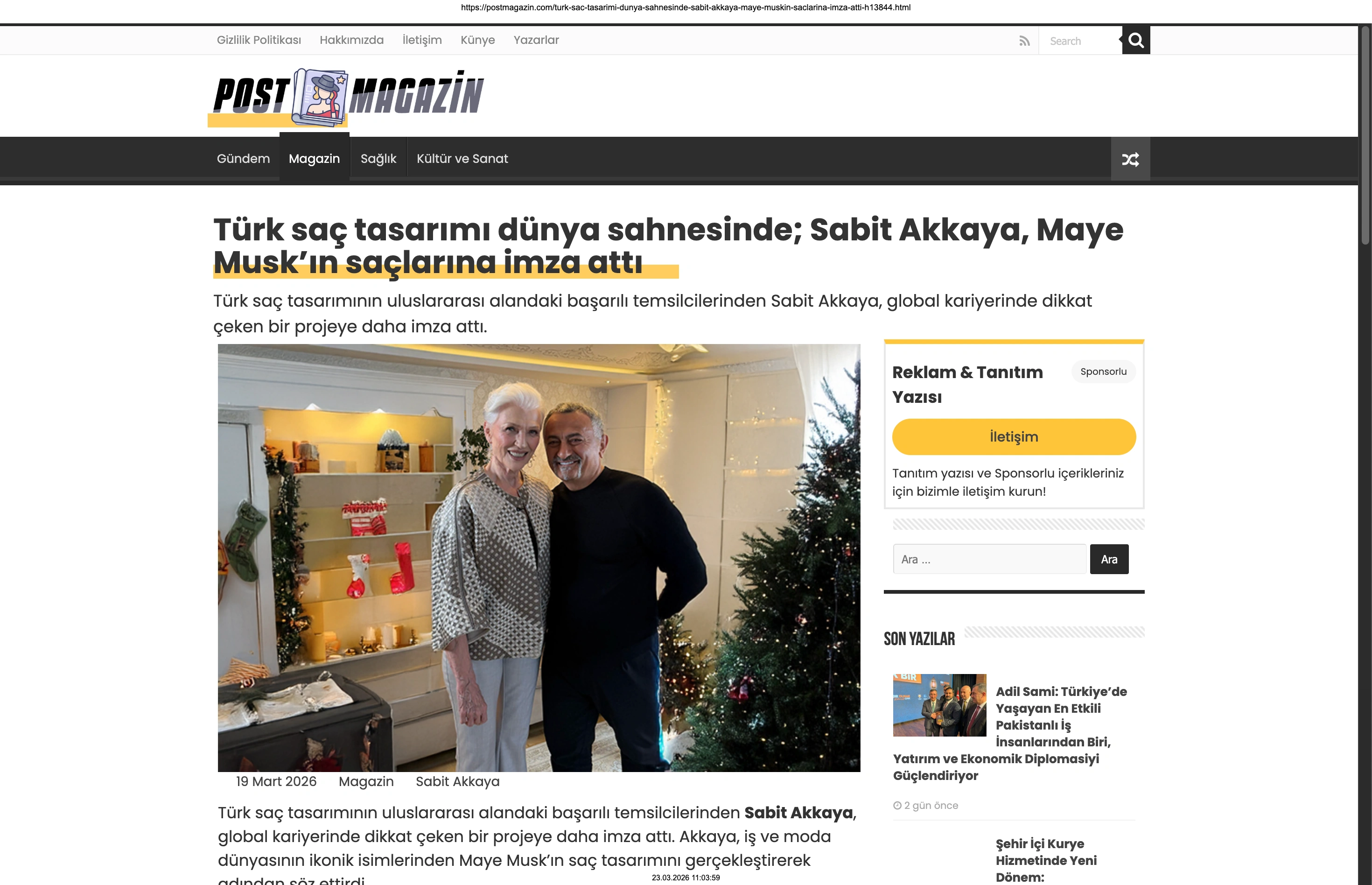 Basında Büyük Yankı Uyandırdı Bu gurur verici buluşma, basında da geniş yer buldu. Magazin gündeminin nabzını tutan platformlardan Magazinname, bu özel anı okuyucularına "Türk saç tasarımı dünya sahnesinde: Sabit Akkaya, Maye Musk'ın saçlarına imza attı" başlığıyla duyurdu. Uluslararası arenada markamızın ve ülkemizin adını duyurmak, vizyonumuzu ve tasarımlarımızı böylesine önemli isimlerle buluşturmak bizim için büyük bir motivasyon kaynağı.