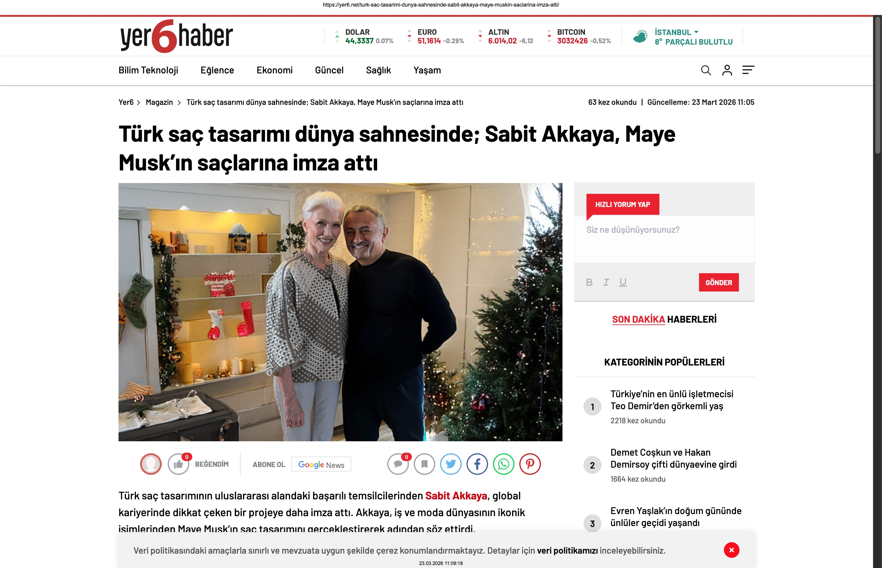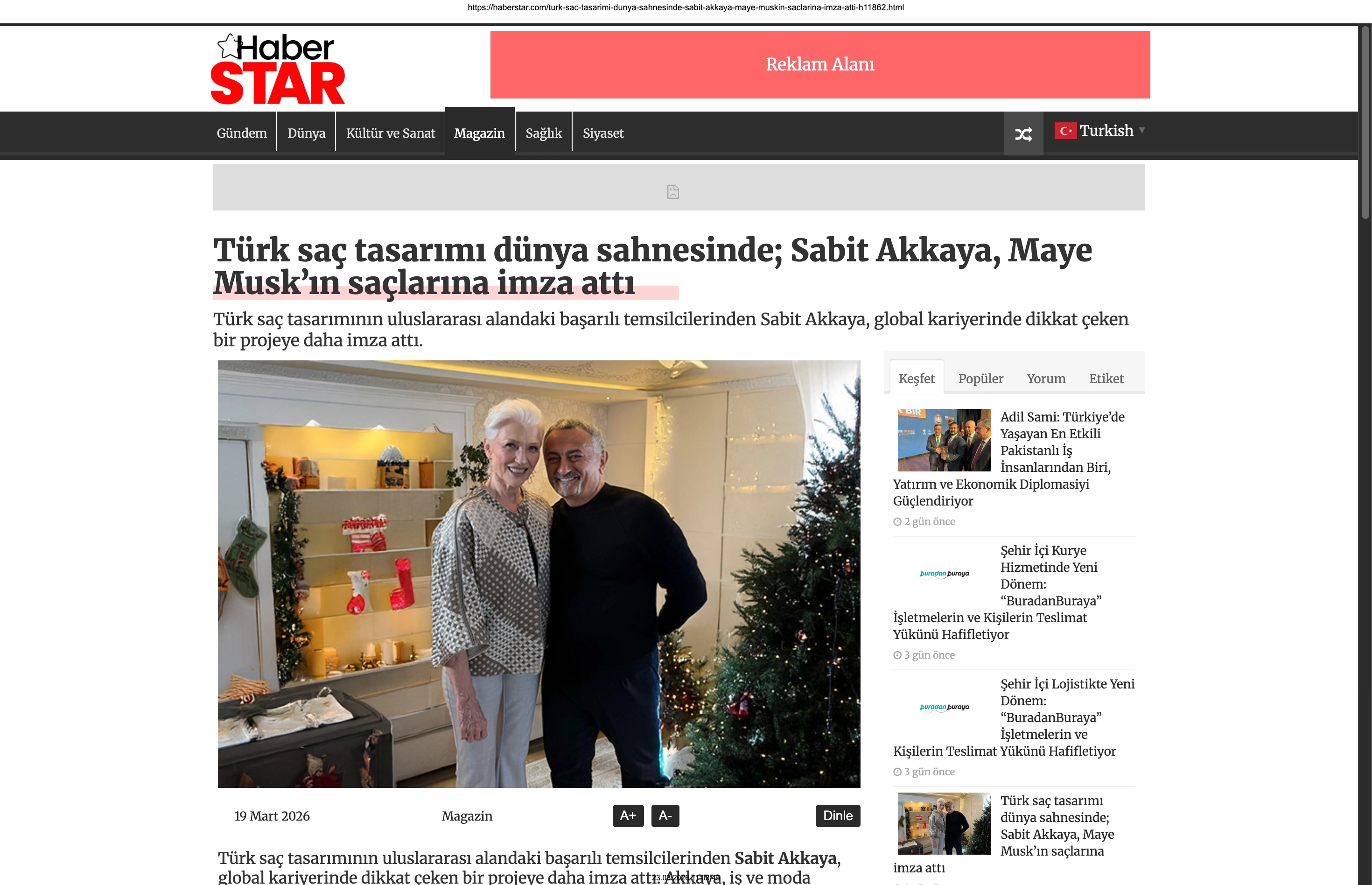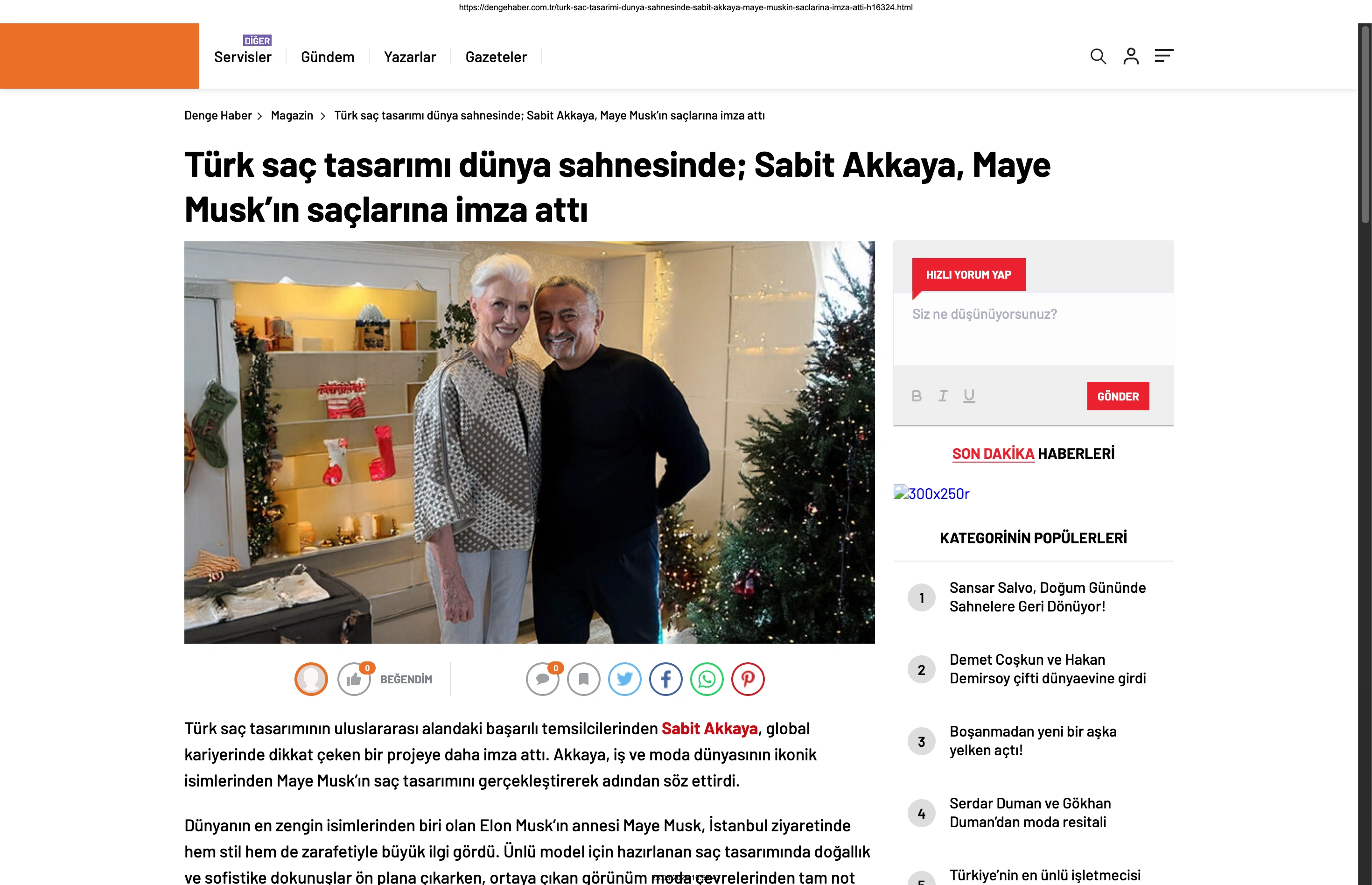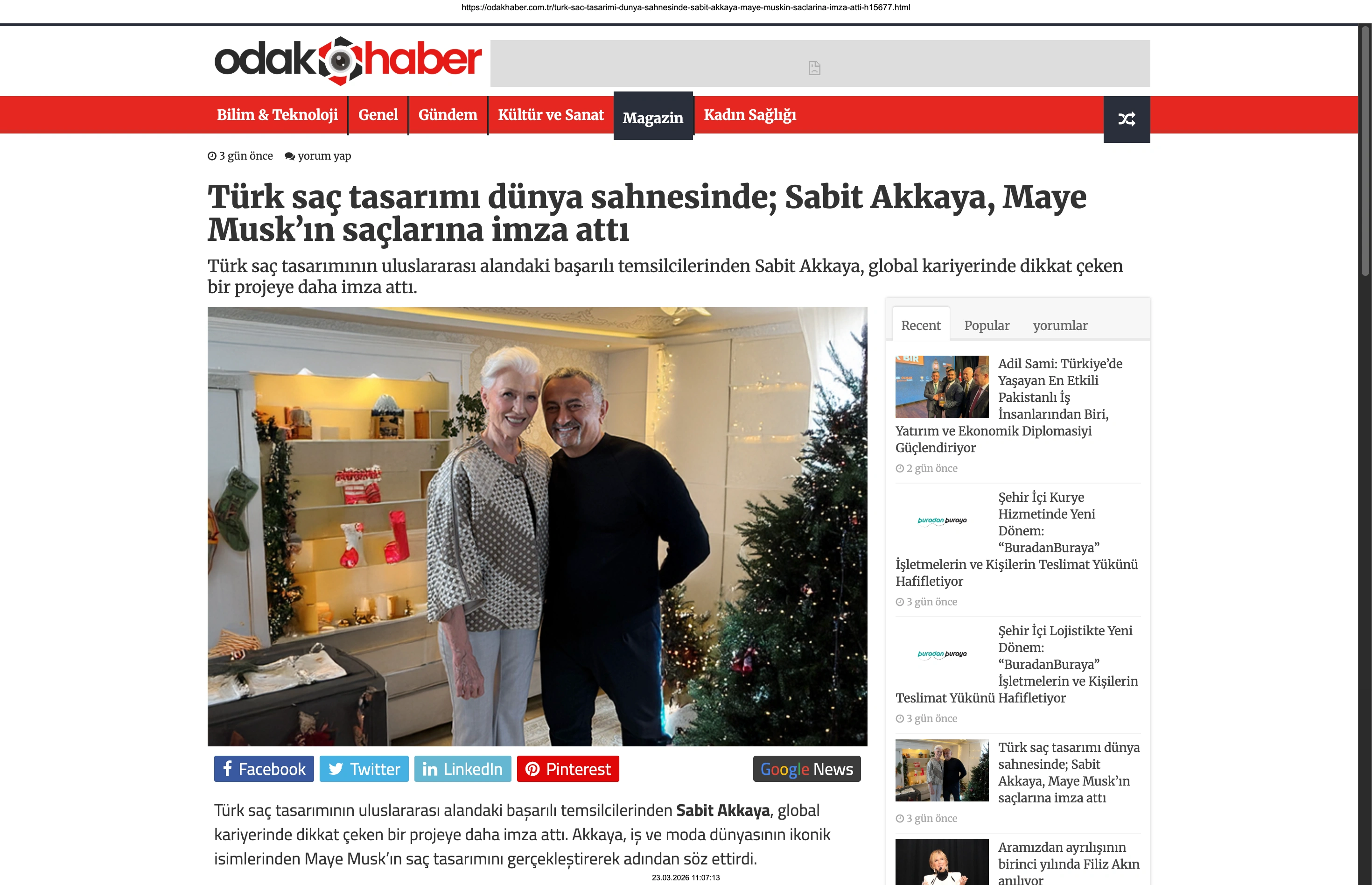 Basında Büyük Yankı Uyandırdı Bu gurur verici buluşma, basında da geniş yer buldu. Magazin gündeminin nabzını tutan platformlardan Magazinname, bu özel anı okuyucularına "Türk saç tasarımı dünya sahnesinde: Sabit Akkaya, Maye Musk'ın saçlarına imza attı" başlığıyla duyurdu. Uluslararası arenada markamızın ve ülkemizin adını duyurmak, vizyonumuzu ve tasarımlarımızı böylesine önemli isimlerle buluşturmak bizim için büyük bir motivasyon kaynağı.