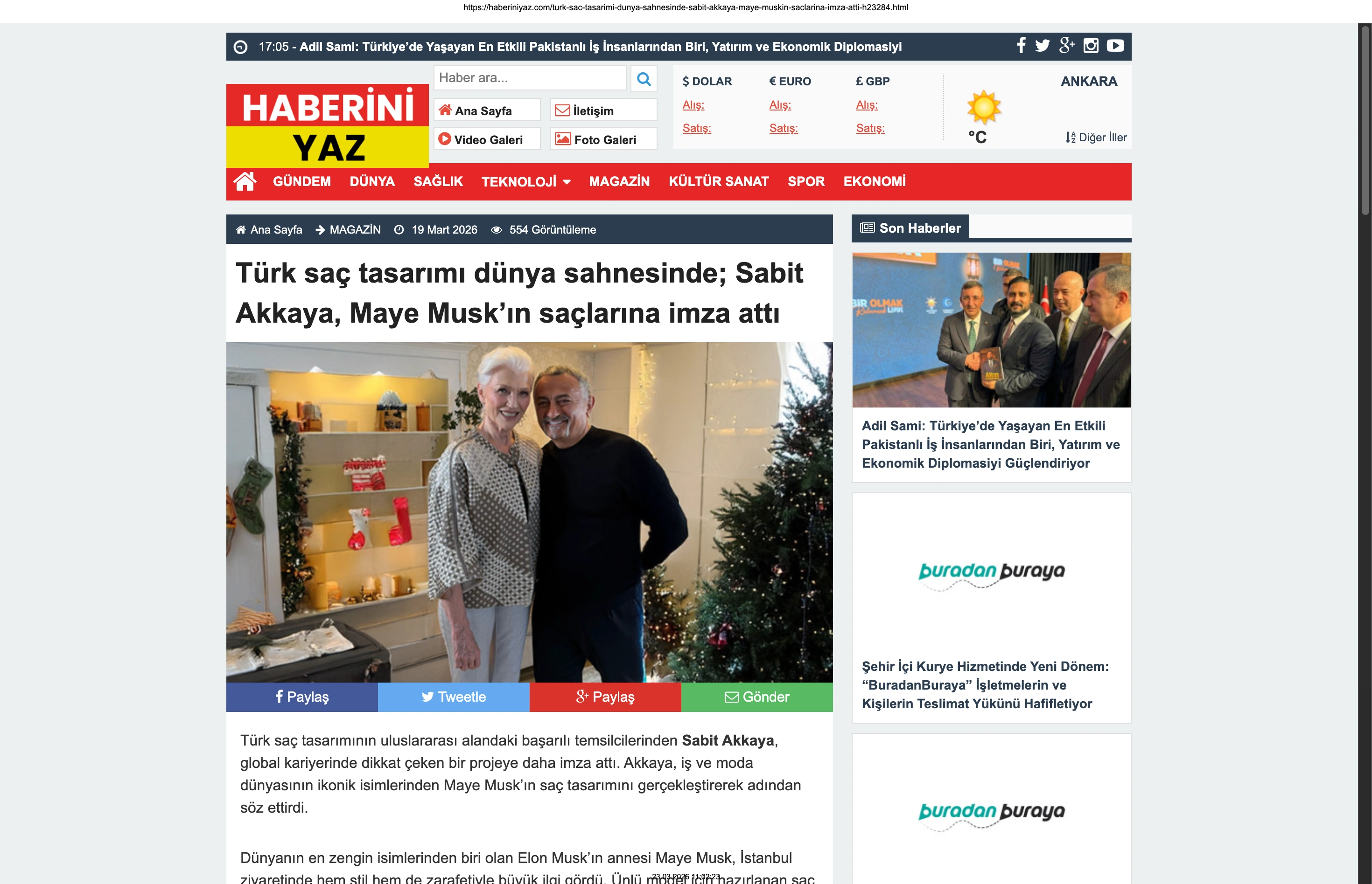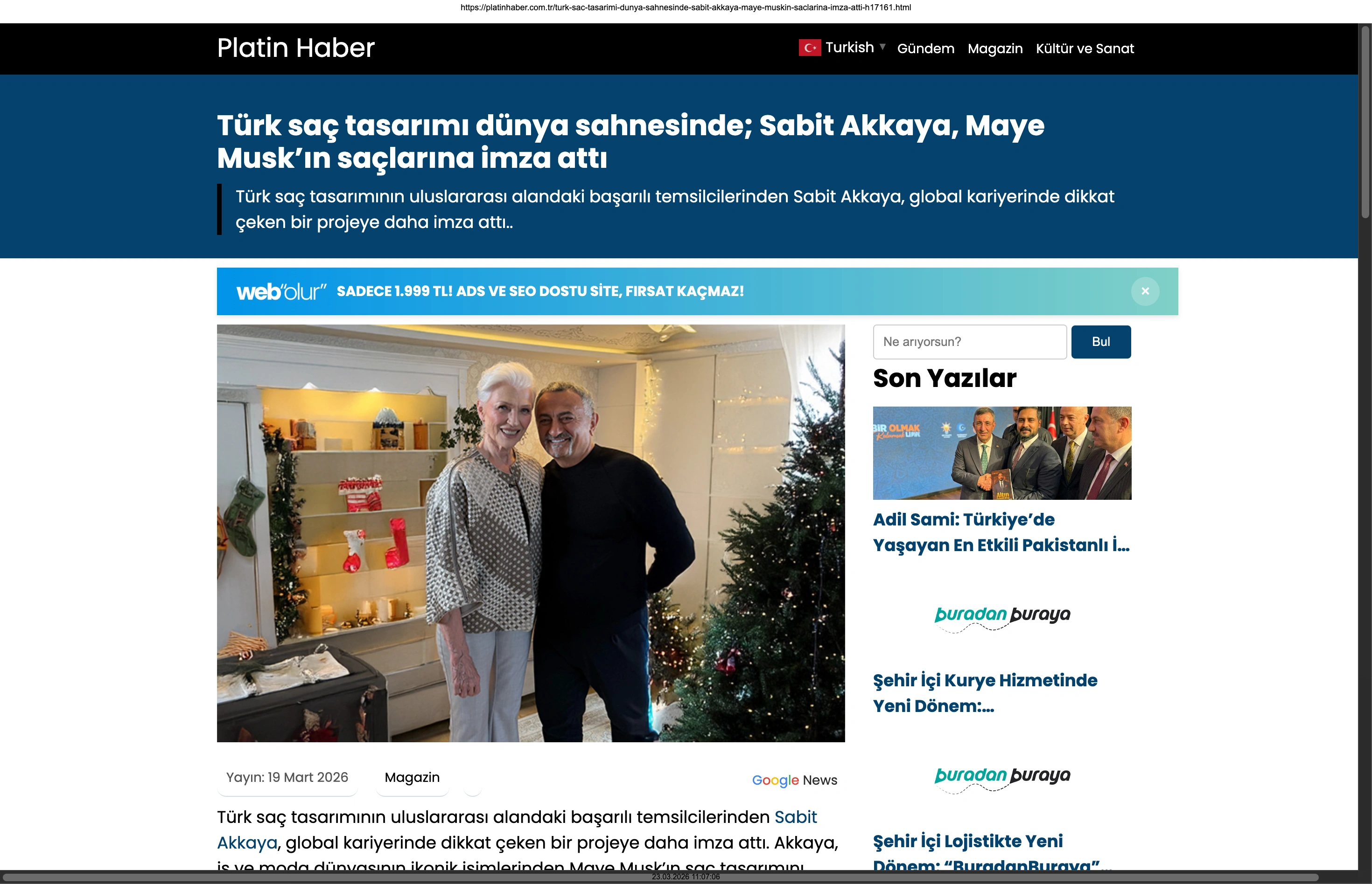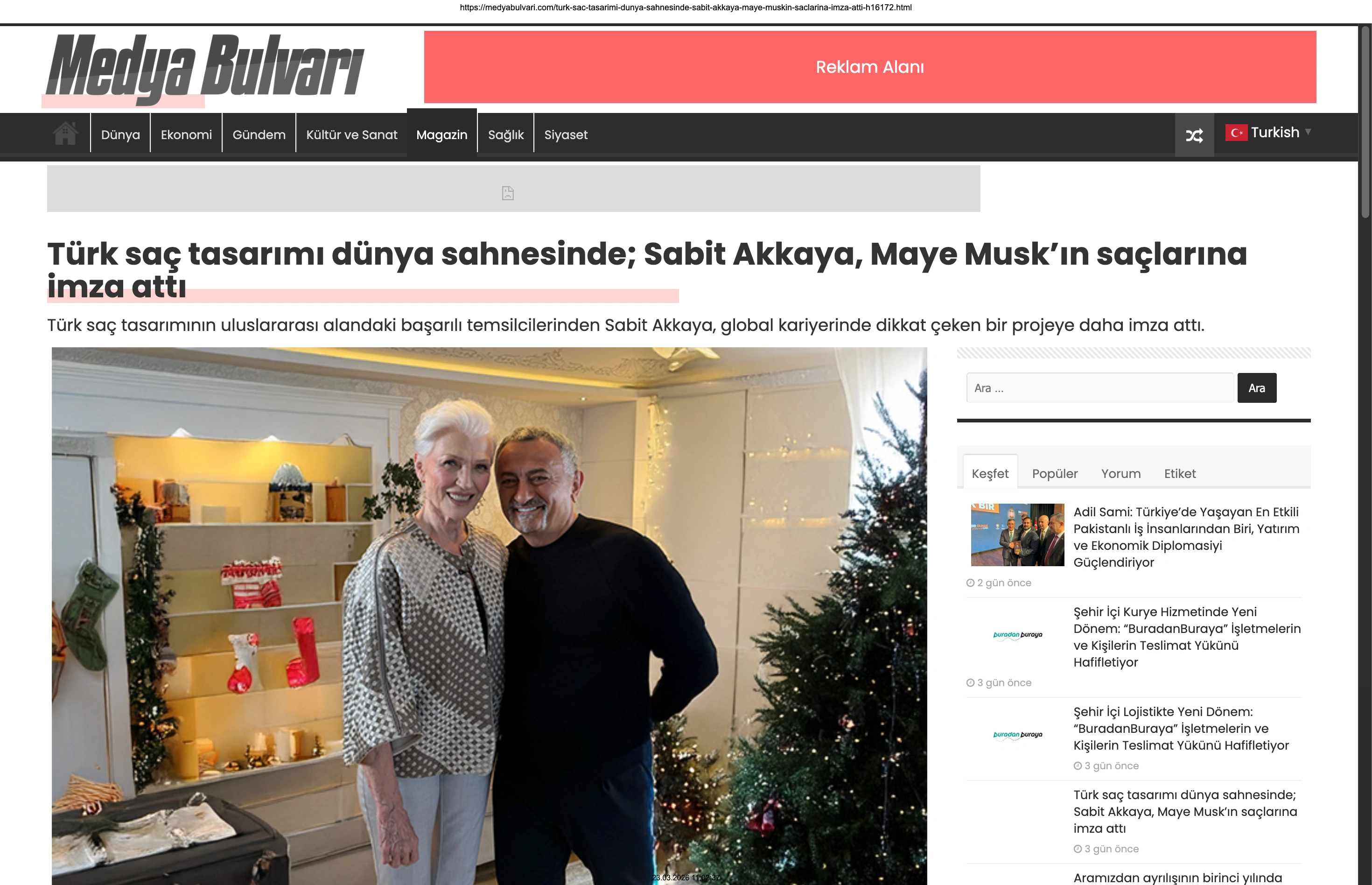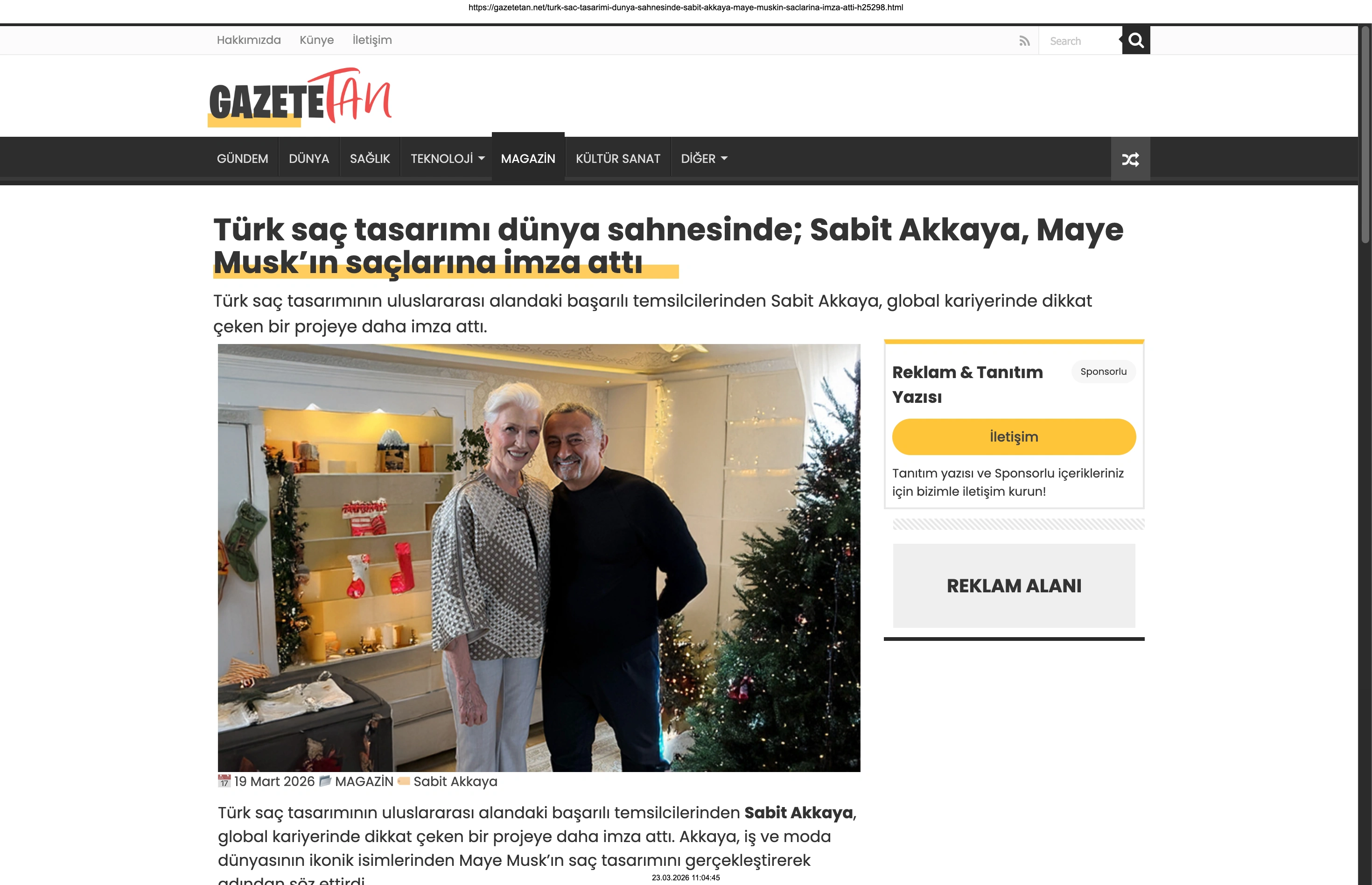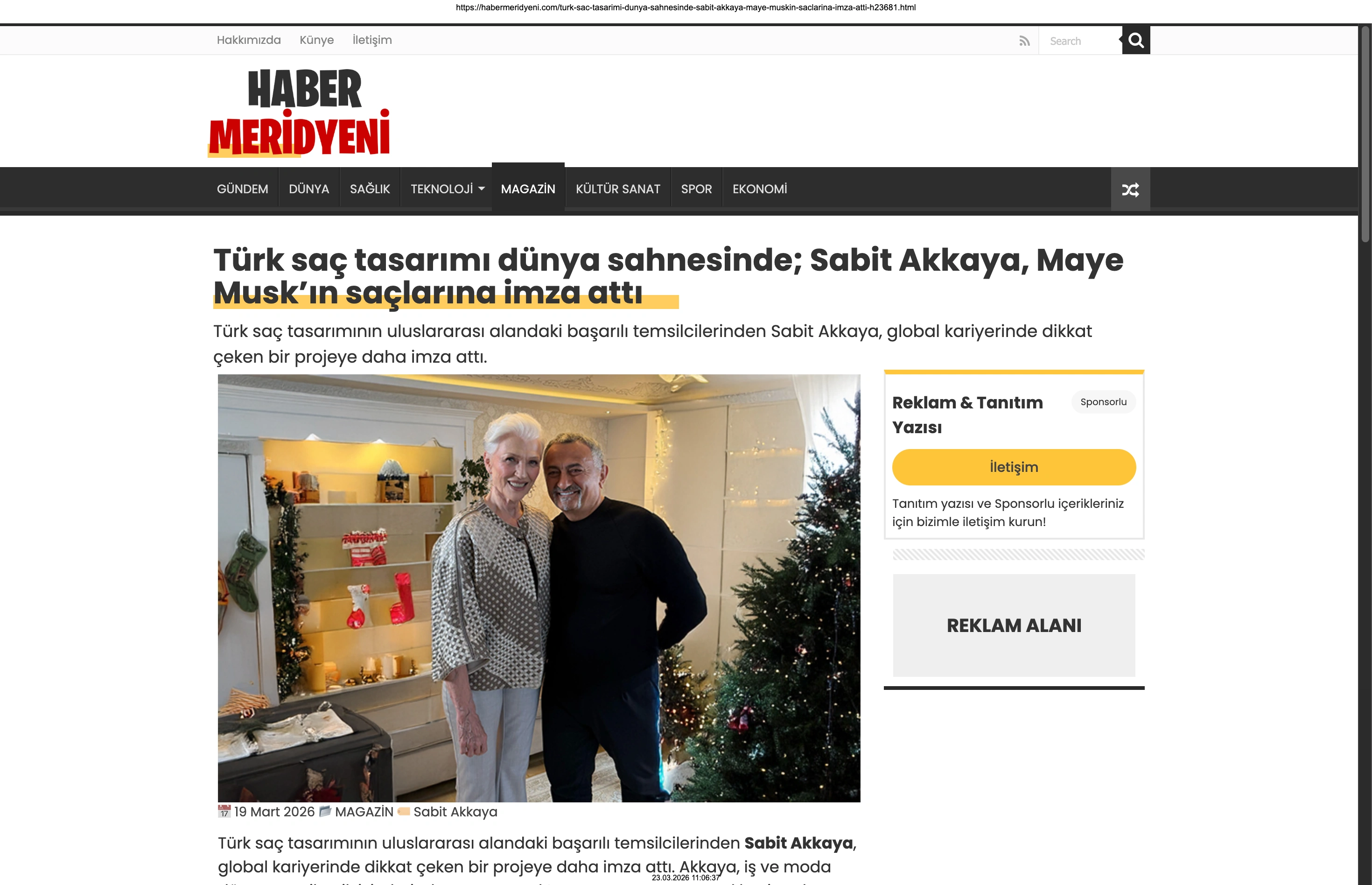 Basında Büyük Yankı Uyandırdı Bu gurur verici buluşma, basında da geniş yer buldu. Magazin gündeminin nabzını tutan platformlardan Magazinname, bu özel anı okuyucularına "Türk saç tasarımı dünya sahnesinde: Sabit Akkaya, Maye Musk'ın saçlarına imza attı" başlığıyla duyurdu. Uluslararası arenada markamızın ve ülkemizin adını duyurmak, vizyonumuzu ve tasarımlarımızı böylesine önemli isimlerle buluşturmak bizim için büyük bir motivasyon kaynağı.