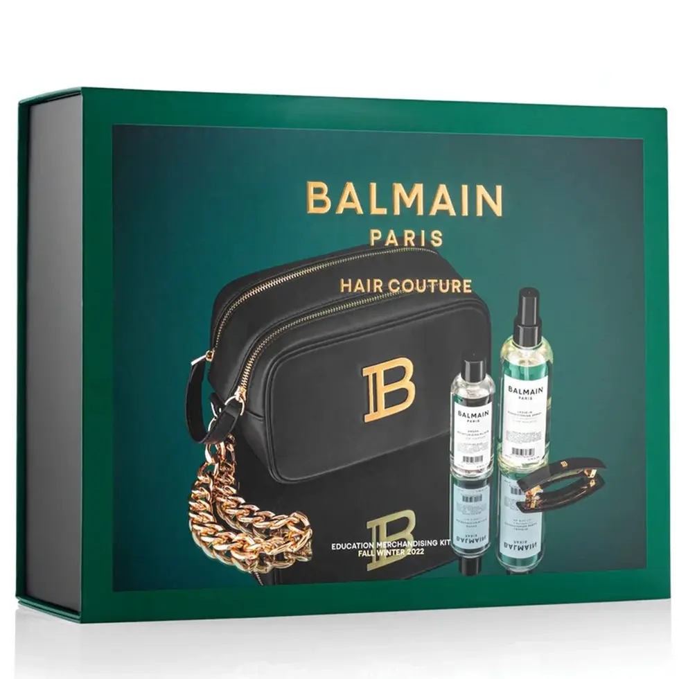 Fonksiyonelliğin estetikle buluştuğu Balmain Hair Couture Toiletry Bag – Black & Gold Saç Bakım Seti, sadece bir ürün değil; saç bakımınıza şıklık katan benzersiz bir koleksiyon parçasıdır. Göz kamaştıran saçlara sahip olmak ve Balmain zarafetini her an yanınızda taşımak için hemen sepetinize ekleyin!